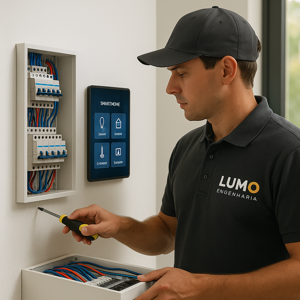 Sua energia em boas mãos. Somos especializados em instalações elétricas, automação residencial e industrial, e energia solar. Nossa equipe altamente qualificada e experiente garante soluções eficientes e seguras para sua casa ou empresa. Conte conosco para iluminar o seu caminho rumo ao futuro sustentável. Venha brilhar com a Lumo Engenharia!